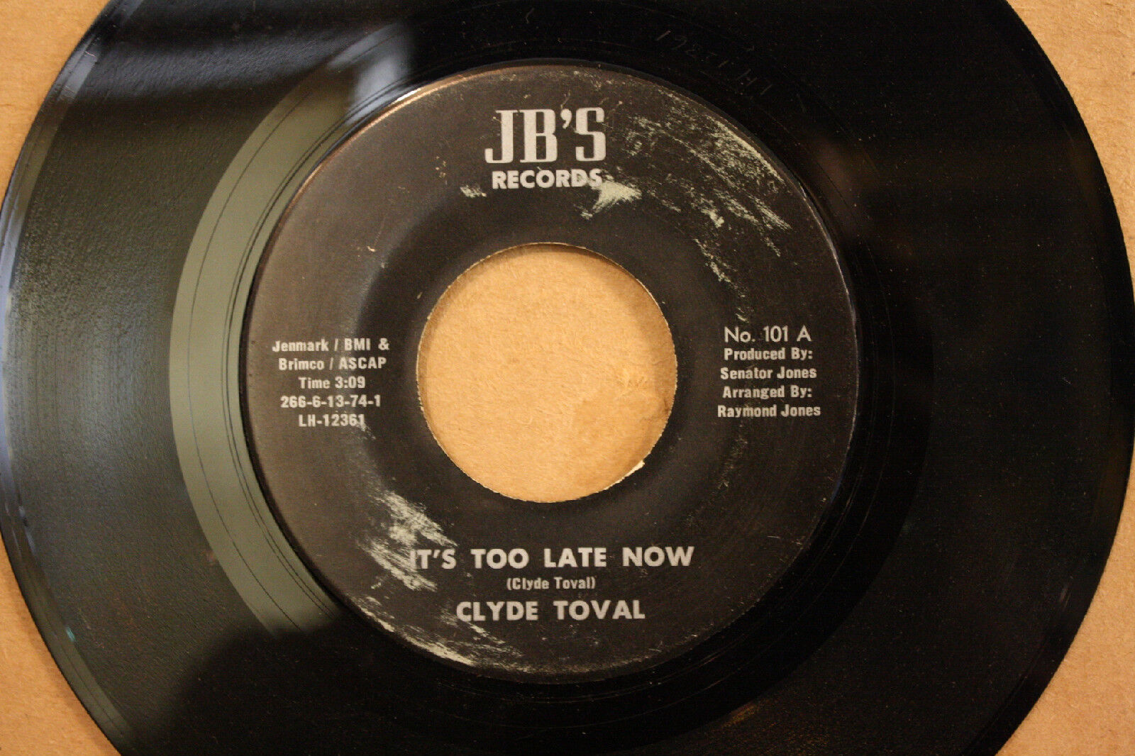 CLYDE TOVAL It's Too Late Now **WORLD OF MAKE BELIEVE** N.O. Funk 45 on JB'S 101